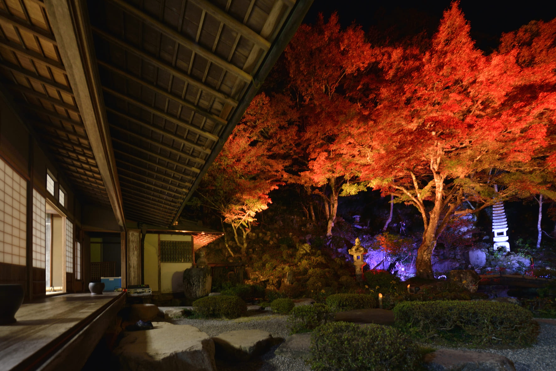 Enjoy the beauty of the traditional Japanese architecture of this luxurious noble residence, surrounded by an elaborately curated garden masterpiece, built more than 200 years ago. The elegance of this property was created over several years with the intention of highlighting both the beauty of the dwellings and the beauty of nature. Moss-covered stone lanterns line the foot paths among the vibrant maple trees, and a wooden bridge spans over the pond, showing marvelous reflections of the lush landscape.