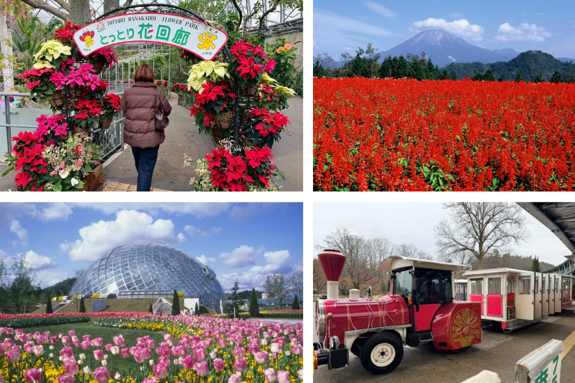Tottori Flower Corridor is one of Japan's largest flower theme parks. The grounds integrate the Flower Dome with greenhouses, outdoor gardens, and various exhibition halls. Stepping inside reveals a surprisingly spacious area with clear pathways that make it very easy to walk around. Even on rainy days, the 1km-long covered observation walkway around the Flower Corridor means no worries. The types of flowers you can see change with the seasons, making it a spot you'll want to visit again and again! The view from the mini train is also highly recommended!