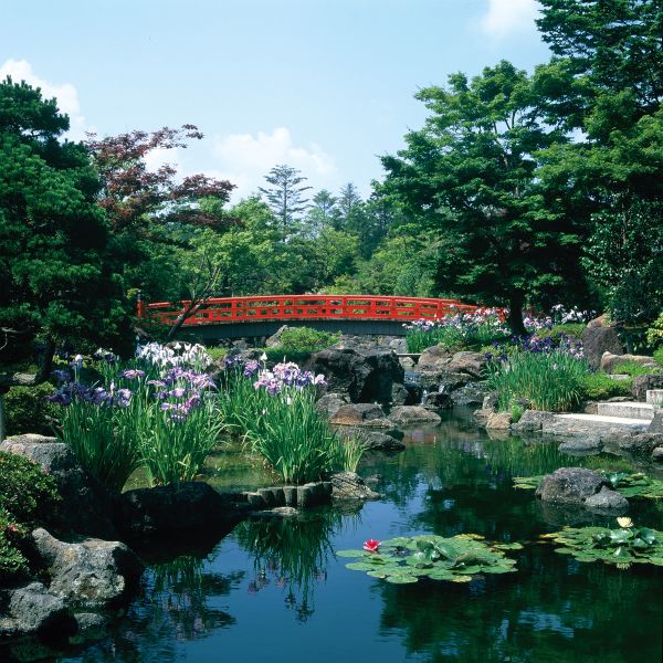 Yushien is an authentic Japanese garden located on Daikon Island, floating in the Nakaumi Sea, famous for its peonies and ginseng. The strolling pond garden features various flowers, including peonies, blooming magnificently throughout the seasons, with the scenery changing with each season. The garden is picturesque from every angle, inviting visitors to pause and admire its beauty. Furthermore, the café space within the garden, enhanced by mist effects, makes the trees, stones, and flowing water outside the windows stand out sharply. It feels like enjoying a painting while relaxing. It's one of those spots you'll want to visit in every season!