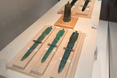 「荒神谷博物馆」紧邻荒神谷遗址而建。20世纪80年代,荒神谷遗址出土了358柄铜剑、16柄铜矛及6件铜鐸,经考证这些器物制于公元前1世纪左右,均被指定为国宝。目前,这些国宝级青铜器由日本文化厅收藏,常年在岛根县立古代出云历史博物馆固定展出。而我造访荒神谷博物馆的当天,恰巧遇上这些国宝的“故乡巡展”在此举办。当眼前陈列的国宝青铜器映入眼帘时,一种仿佛穿越到遥远古代的奇妙之感,油然而生。